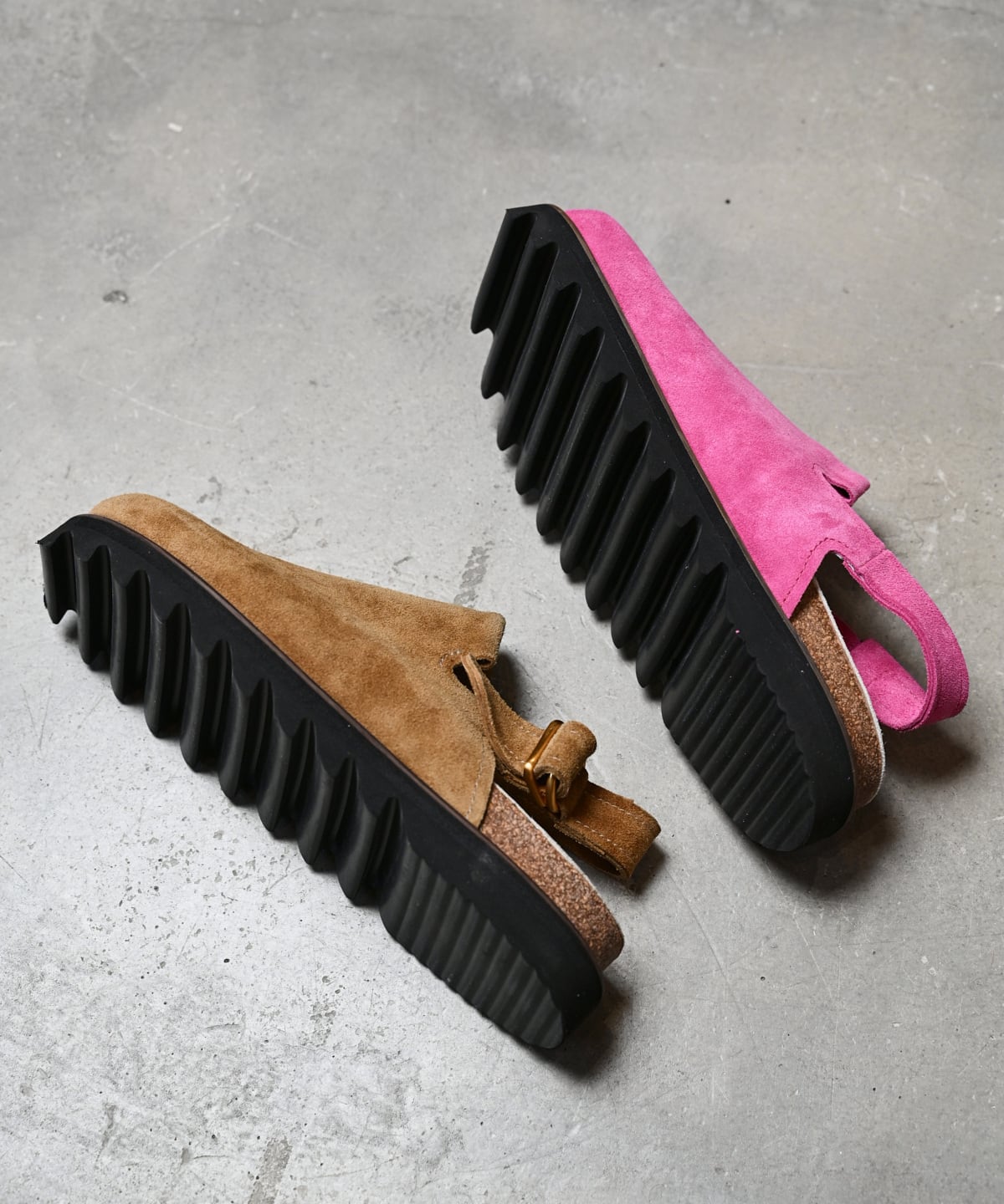 EARLE独自に木型から設計を行った、フロントカバータイプのフットベッドサンダル。