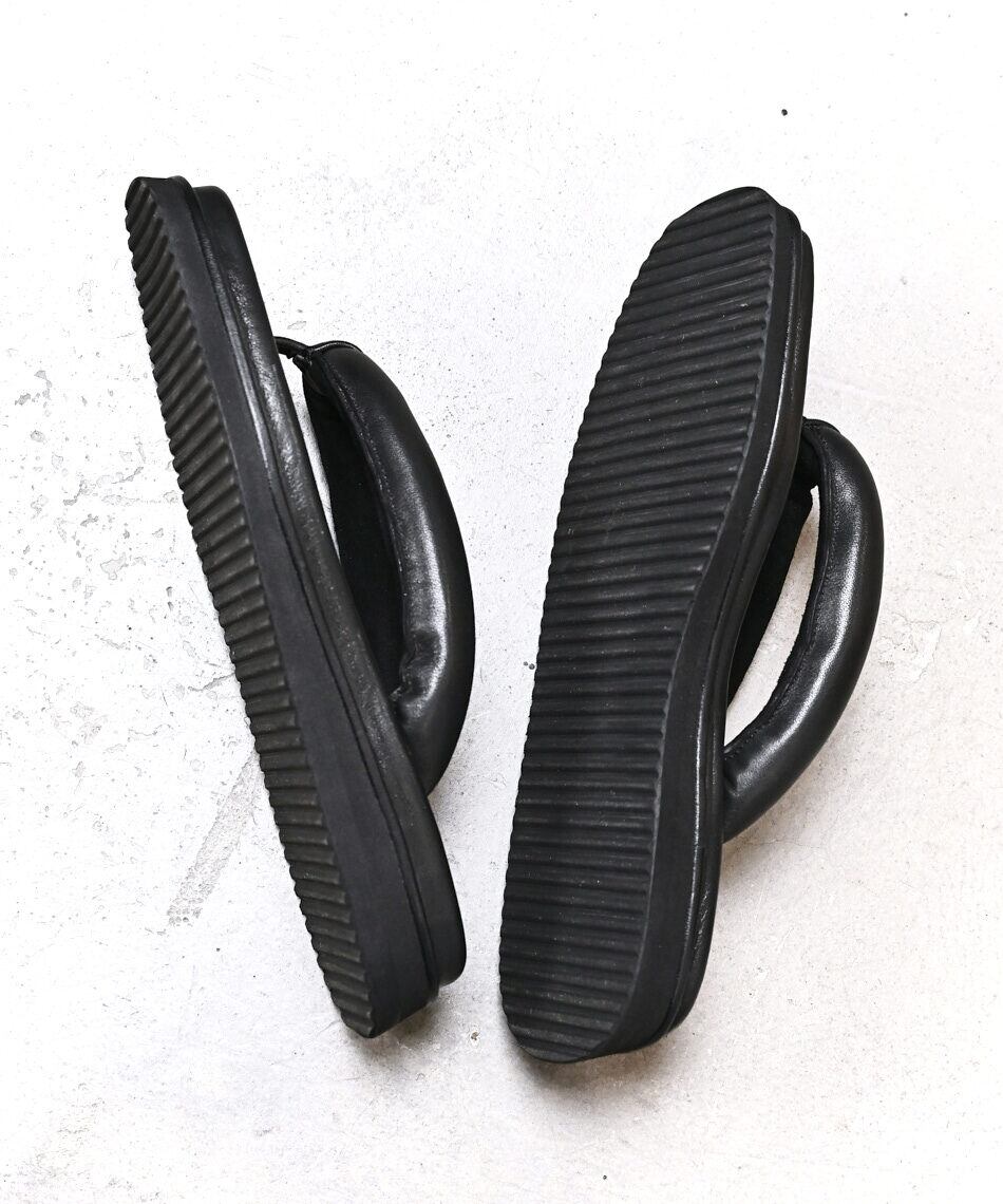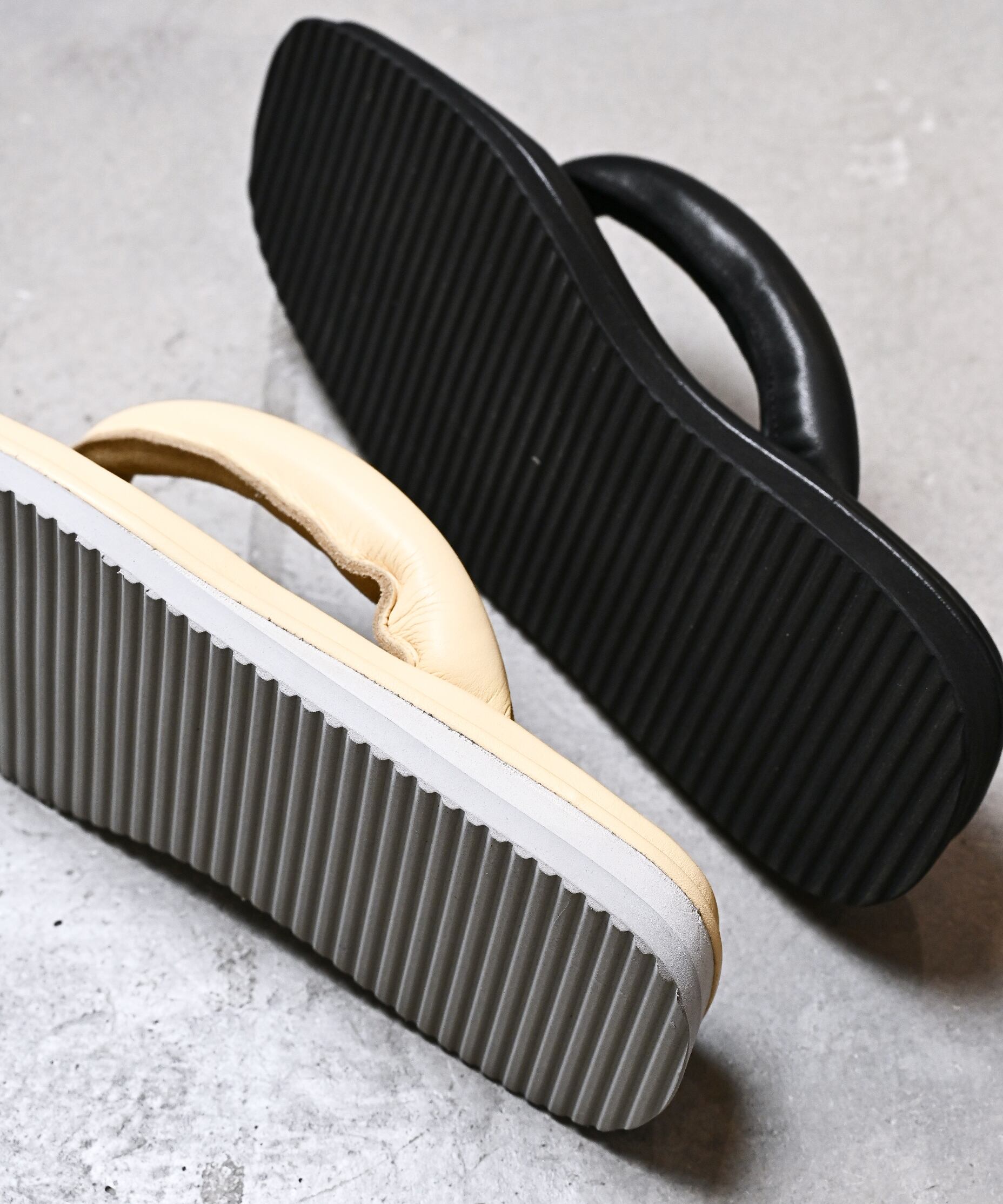 雪駄のディティールとトングサンダルをミックスした、 ボリューミーなフルレザートングサンダル。