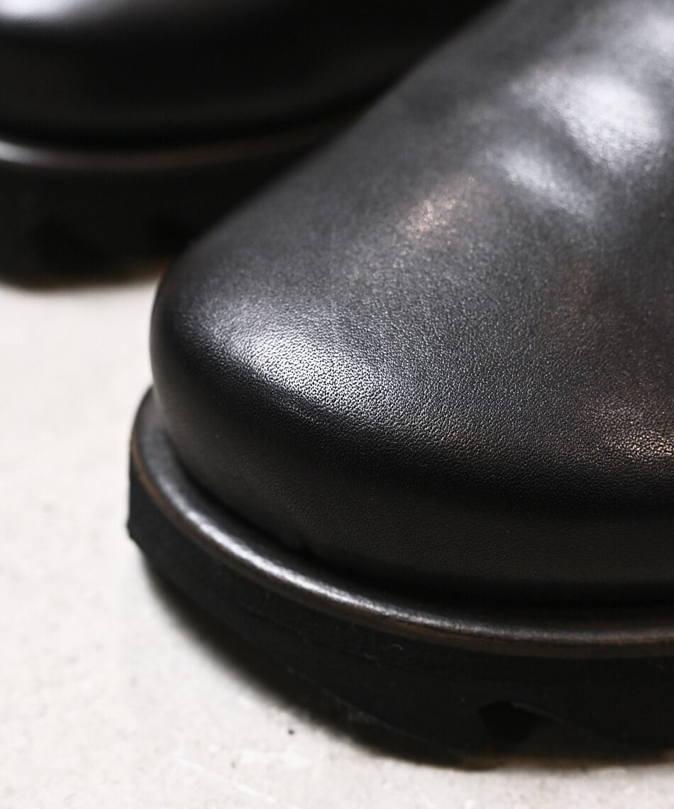 エレガントなアッパーレザーの選定、インソールにも牛スムースレザーを使用することでシューズのようなクラシックな印象に。