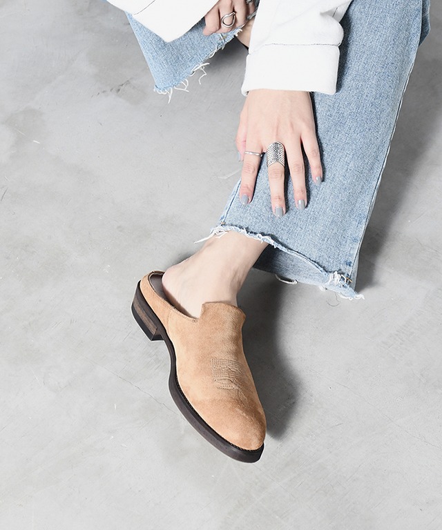ウエスタンブーツの仕様をモチーフにしたウエスタンミュール。