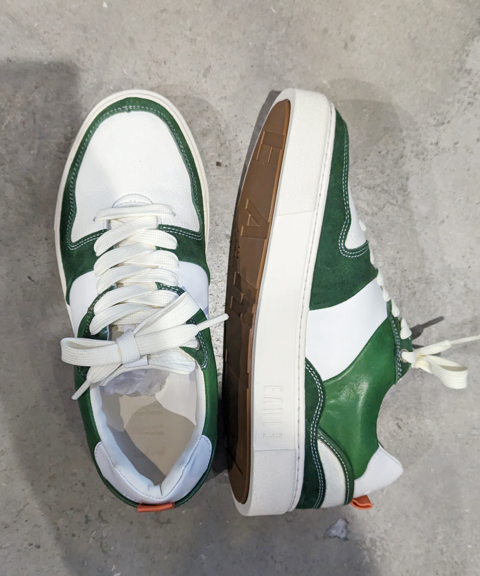 80'sのバスケットシューズやスケートシューズの要素をミックスしEARLEのオリジナル木型に合わせ再編集したコンビレザータイプのスニーカー。