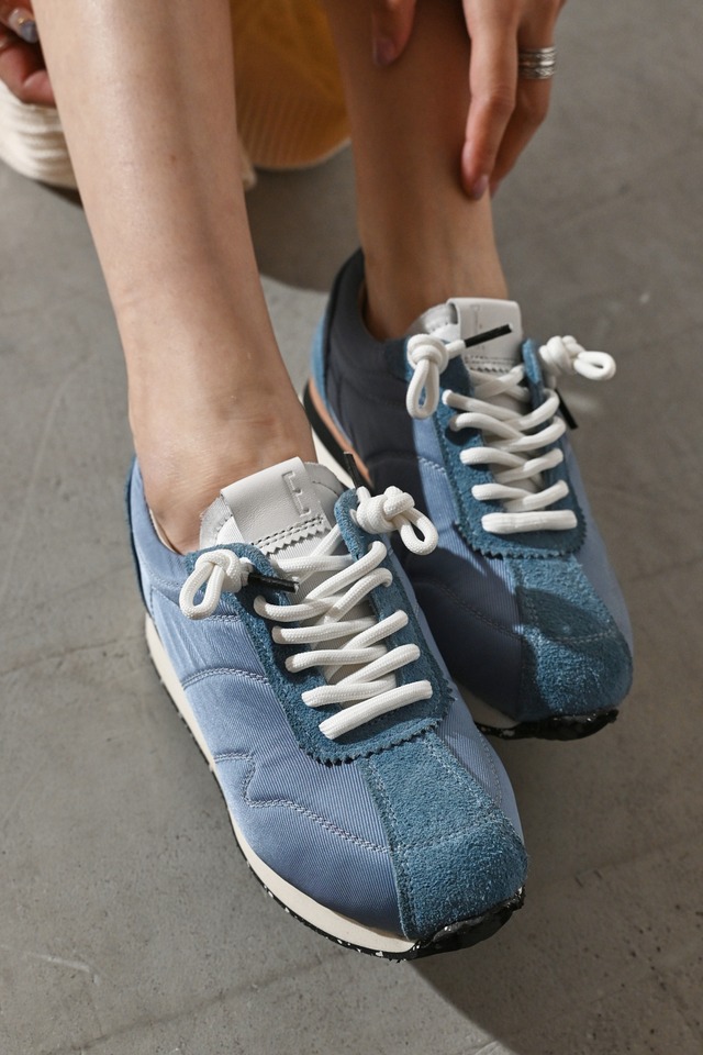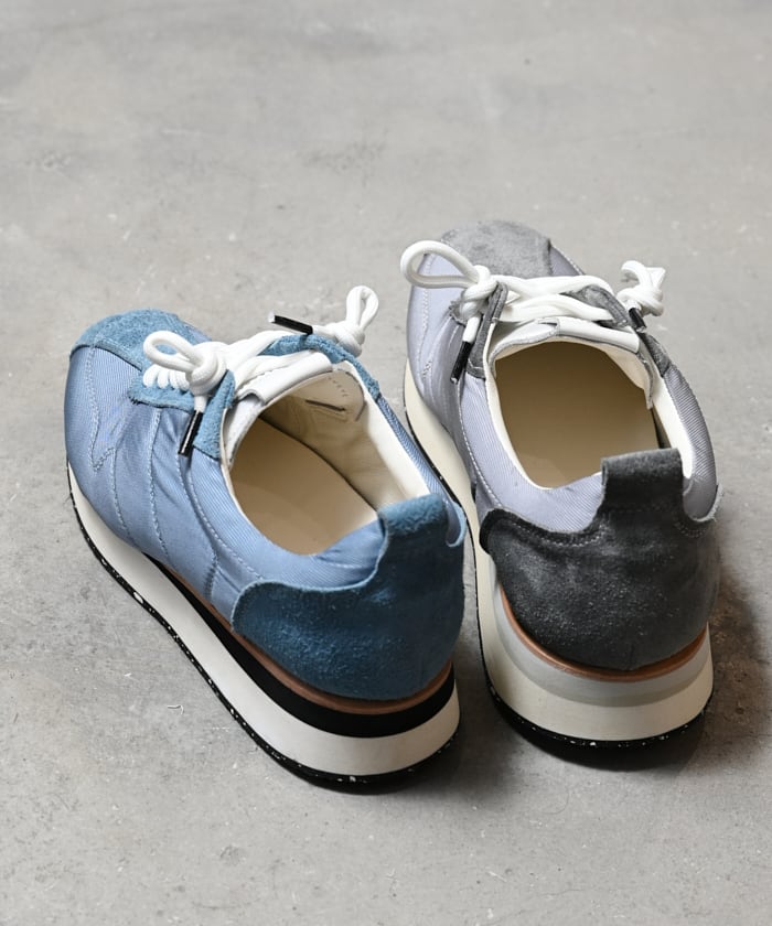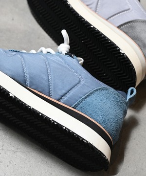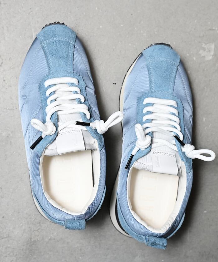 70's のクラシックランナーをデザインベースに再編集した レザー×高品質ナイロンのコンビスニーカー。