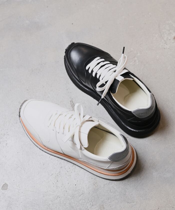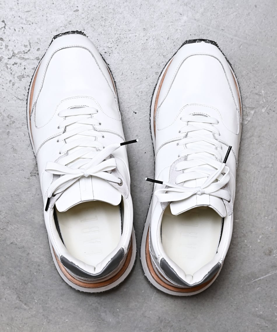 ダブルソール仕様のランナースニーカーのフルレザーモデル。